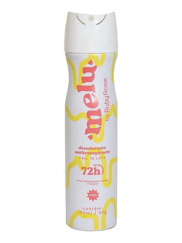 Mas uma Novidade da MeluBy Ruby Rose, Chegou os novos Desodorante Antitranspirante 72H de Proteção com um cheirinho bem suave, em 6 versões. Venha já garantir o seu. Eles também são: #Produto Vegano. #Livre De álcool etílico, sufato e Parabenos. #Não testado em animais #Glútten Free #Testado Dermatologicamente. Agite antes de usar.